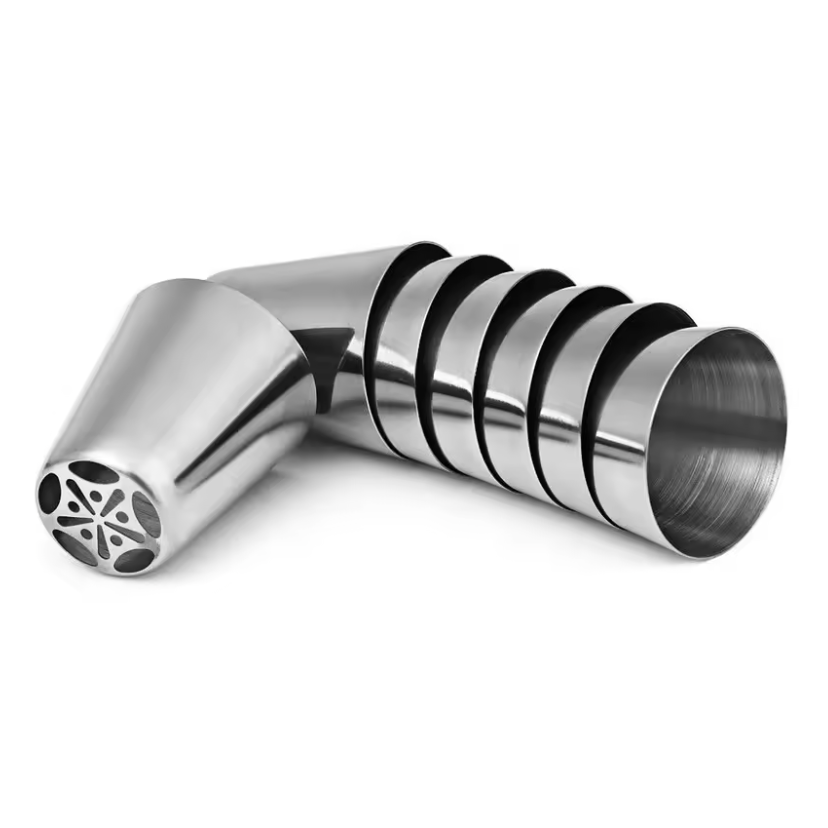 Každý kit obsahuje přesně 12 hrotů z nerezové oceli různých tvarů, stejně jako trojitý adaptér a opakovaně použitelný sáček na hroty.