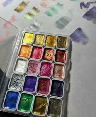 Yes, they mix easily with classic watercolors to create pearlescent reflections.