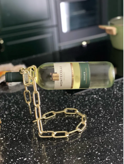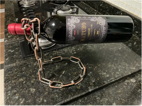 Estabilidad perfecta asegurada por eslabones metálicos soldados entre sí para un soporte seguro de la botella.