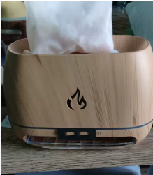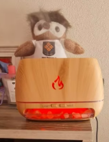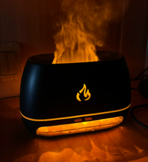 מאוד יפה על השולחן שלי! 💨 הערפל עולה לאט והאפקט של האש מאוד מרגיע.
