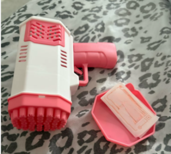 Dette boble pistolen er fantastisk! Datteren min elsker å ta den med til parken, alle barna kommer for å bli med henne. Veldig godt kjøp.