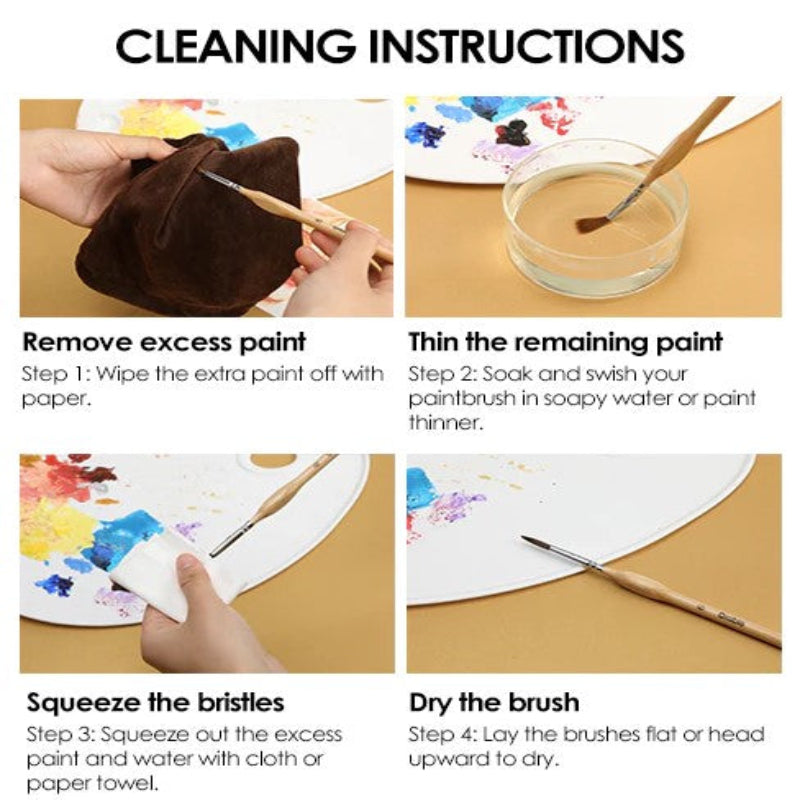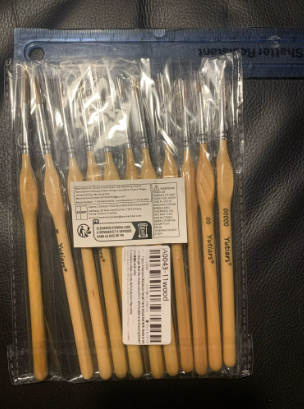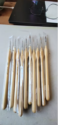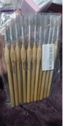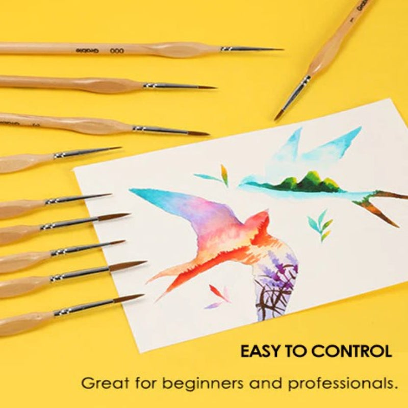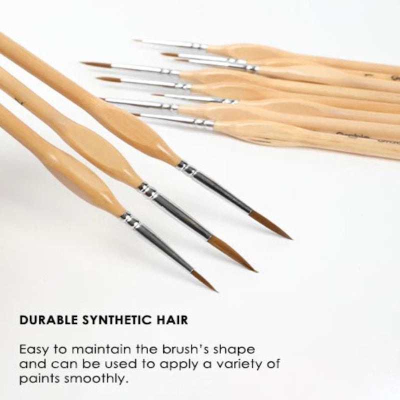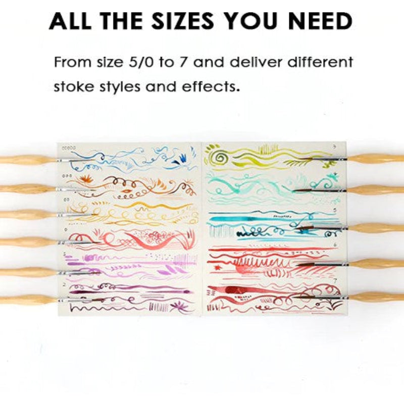 11 pensule de la dimensiunea 5/0 la 7 pentru a explora toate tehnicile, de la linii fine la umpluturi.